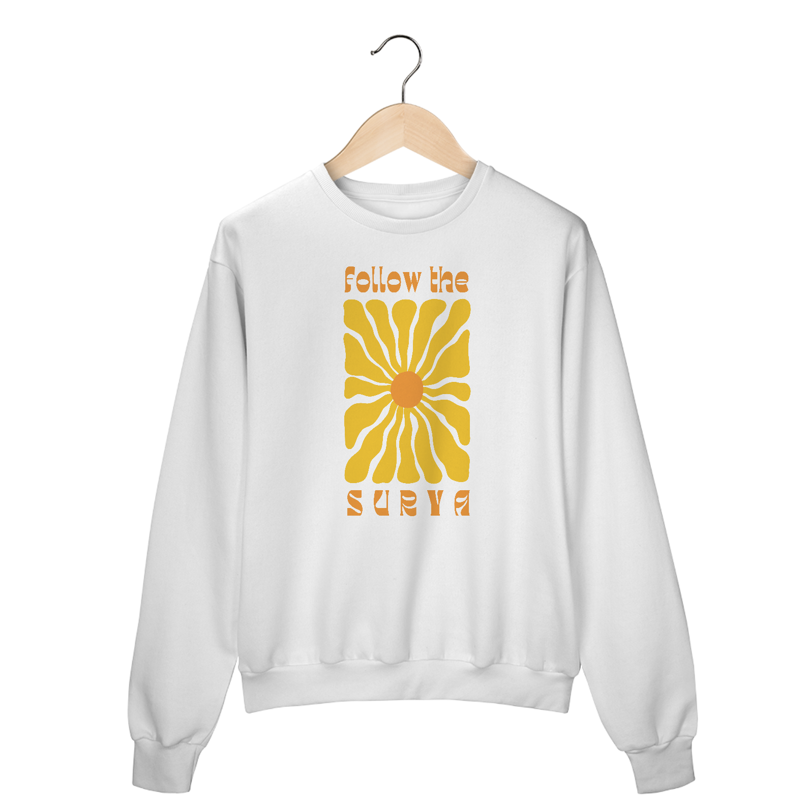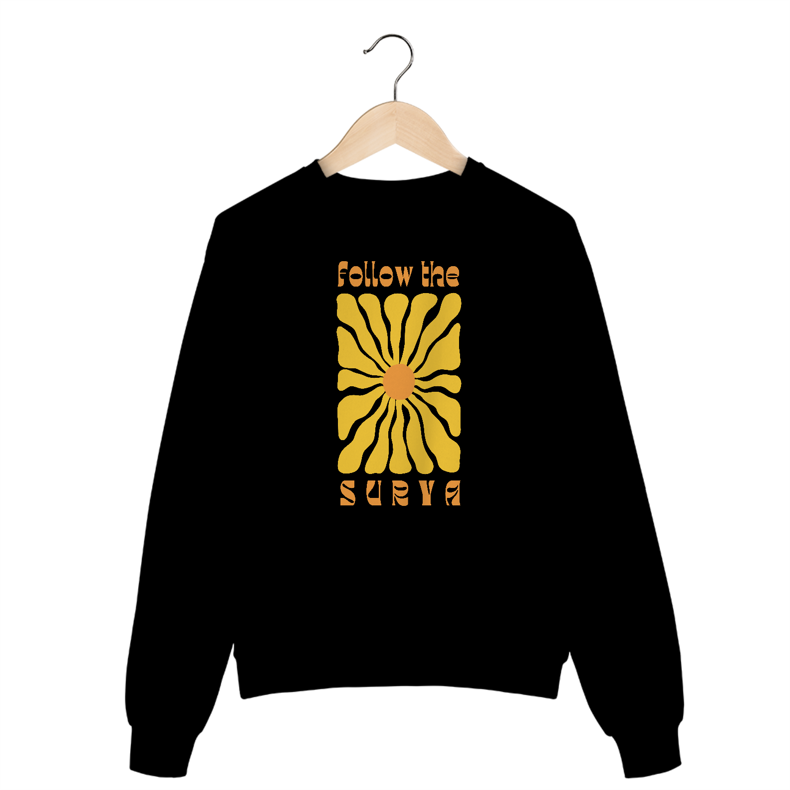"Então siga, siga o sol / Na direção dos passarinhos / Na direção do amor". O Moletom Blusão Follow the Surya tem estampa desenvolvida a mão. Macia, confortável e perfeita para te aquecer neste inverno!
