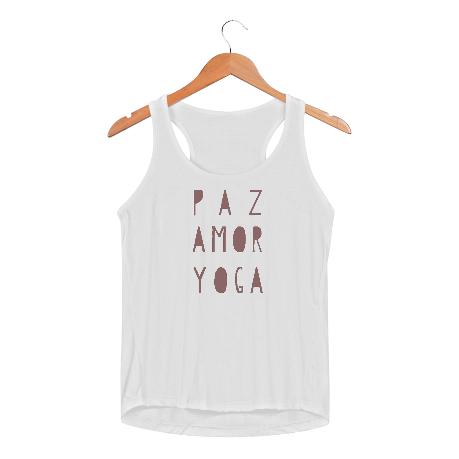 A Regata Sport Dry UV Paz, Amor e Yoga  tem estampa exclusiva. Leve, confortável e perfeita para a prática de qualquer atividade física.